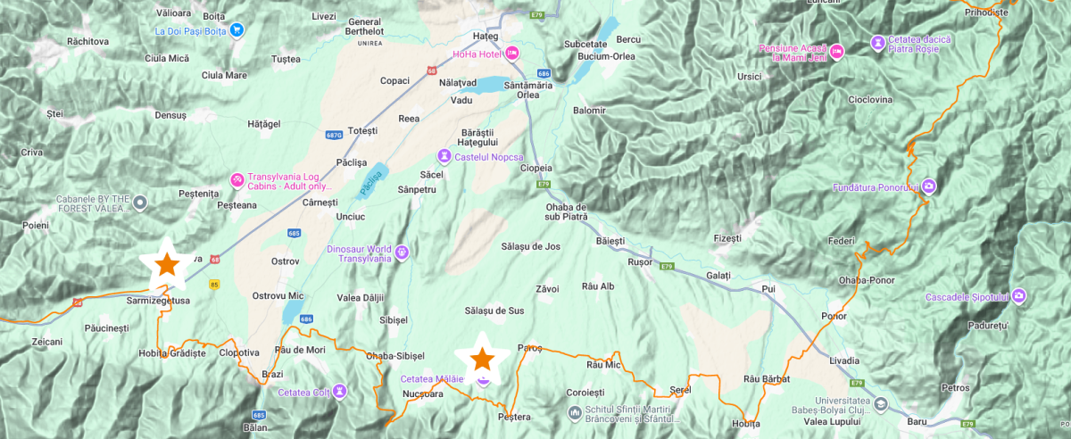 4Cetatea Regală a Hațegului2,5 km1 oră, pe jos, într-un sensmediu50 mdrum forestier, potecăGeoparcul Țara Hațegului